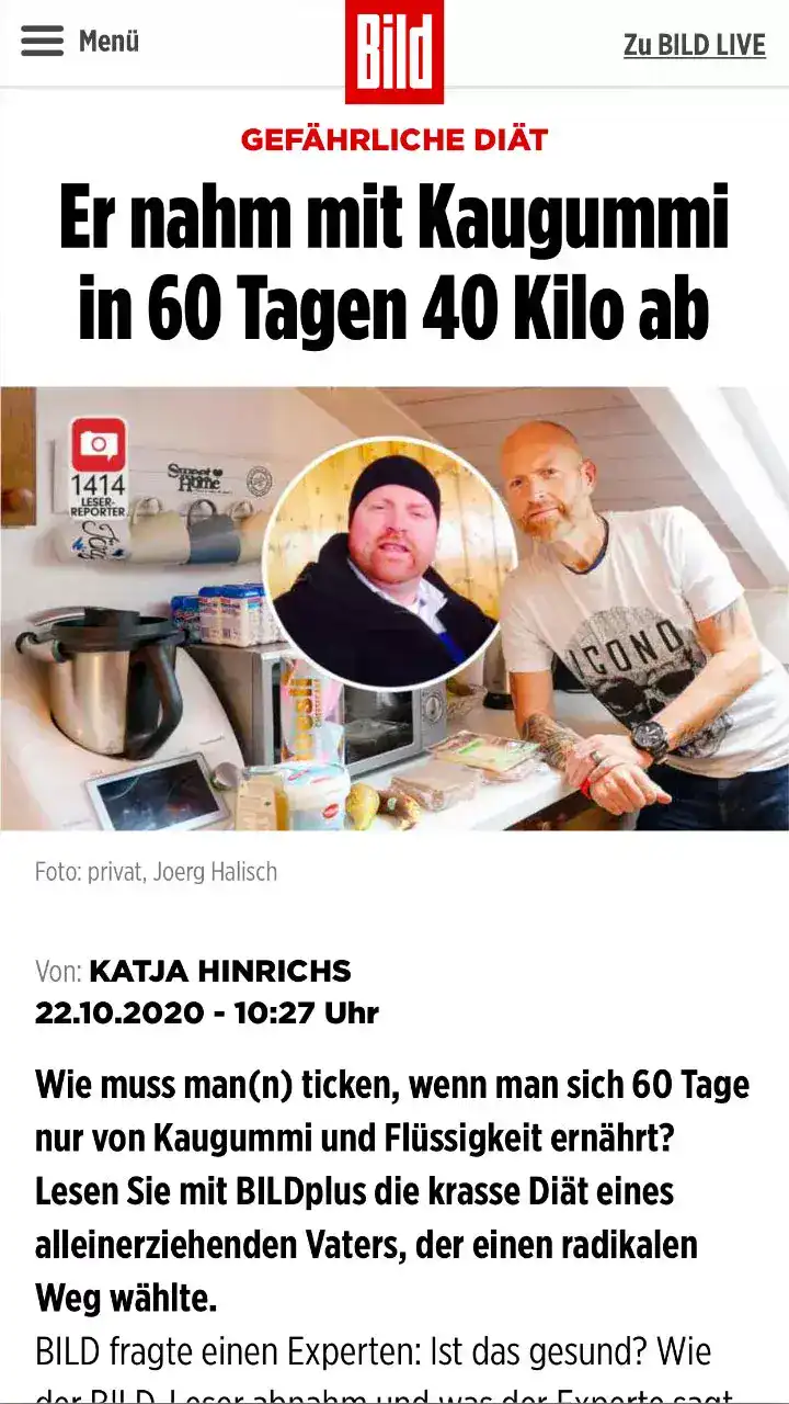 Vielleicht haben Sie es gelesen: In der BILD-Zeitung ging es um jemanden, der angeblich 40 Kilo nur durch Kaugummikauen abgenommen hat. Als die Anfrage zu dieser Geschichte bei mir ankam, musste ich kurz schmunzeln. 40 Kilo runter, nur durch Kauen? Klingt verlockend – ist medizinisch aber Unsinn.